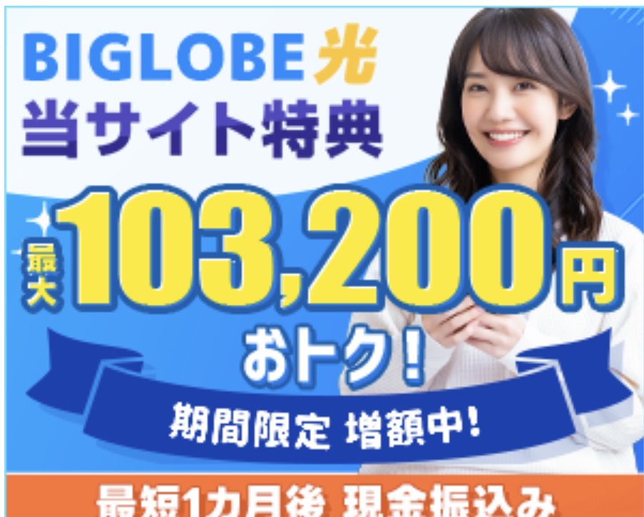 ビッグローブ光は高速で安定した光インターネットサービスとして多くの利用者に選ばれています。正規取扱代理店「株式会社NEXT」から申し込むことで、高額キャッシュバックなどのお得な特典を受けられる可能性があります。