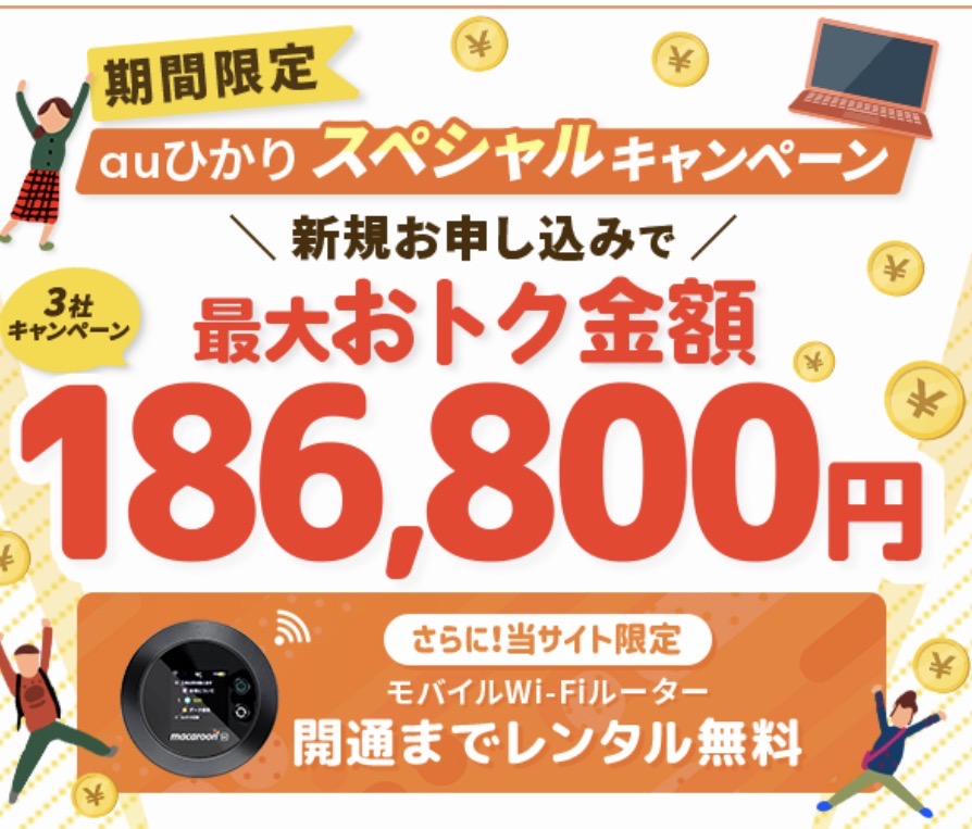 工事費実質無料、他社違約金負担、キャッシュバックなどの特典が用意されていることが多く、初期費用を抑えてスタートできる点が魅力です。