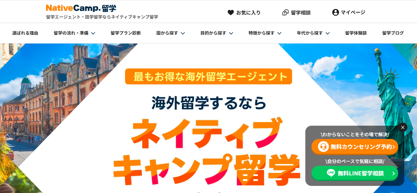 ネイティブキャンプ留学は、オンライン英会話で培ったノウハウを活かし、海外での語学学習と実践環境を組み合わせた留学サービスです。