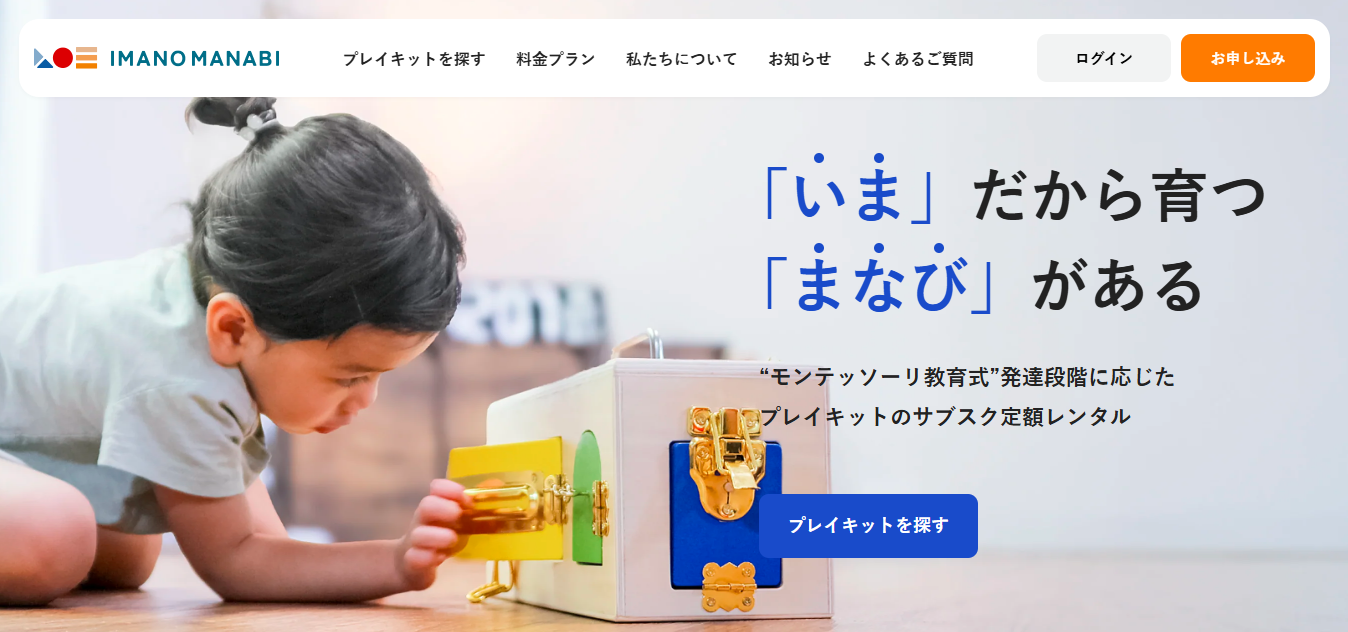 IMANO MANABI(イマノマナビ)は、モンテッソーリ教育の考え方をベースに、子どもの発達段階に合わせた最適な学びの環境を家庭に届けるサービスです。